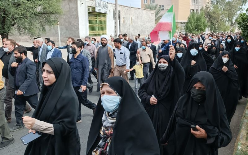 مردم همیشه در صحنه شهر دارالولایه جیرفت امروز ۶ آبان ۱۴۰۱ پس از اقامه‌ نماز جمعه همراه با سایر هموطنان با حضور در راهپیمایی، جنایات اخیر حرم مطهر احمدبن موسی(علیه السلام) را محکوم نمودند.